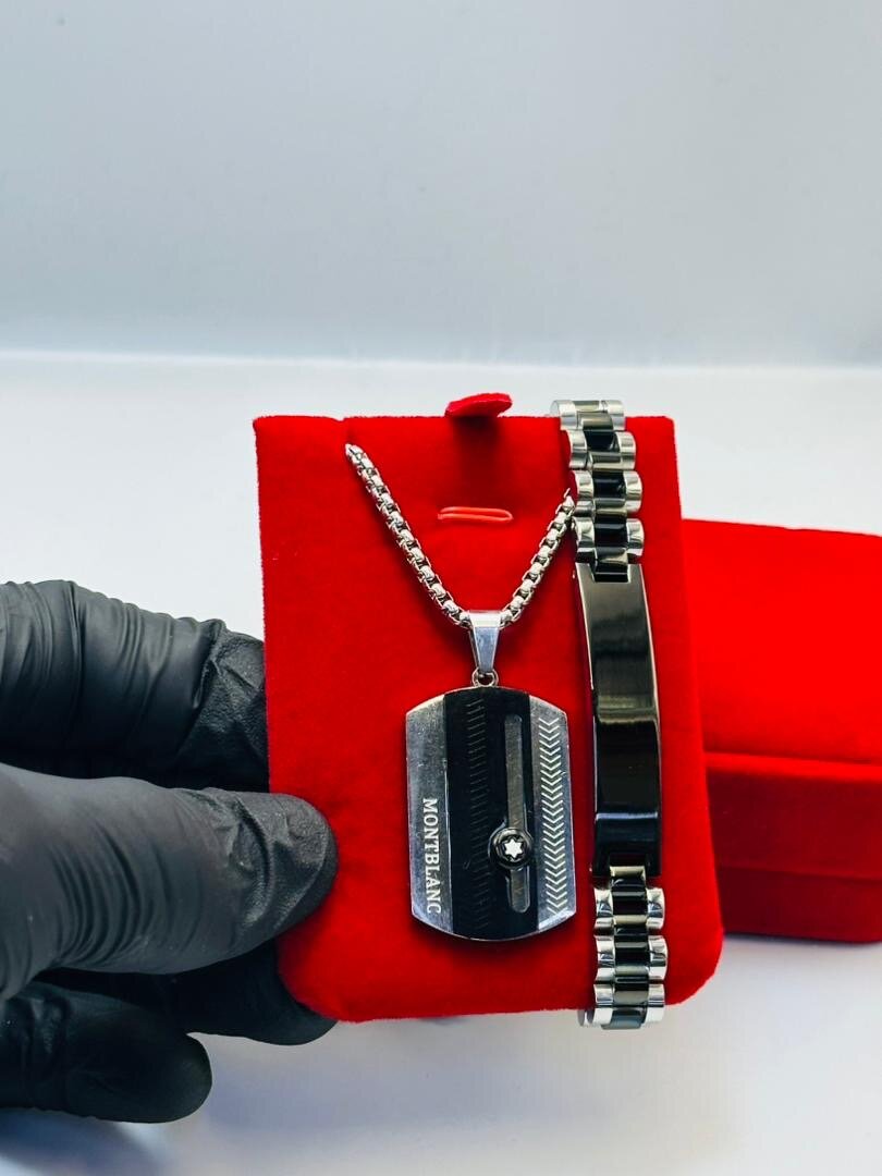 Découvrez notre ensemble élégant pour homme composé d'un bracelet en métal bicolore et d'un pendentif moderne. Parfait pour ajouter une touche de sophistication à votre tenue, cet ensemble est idéal pour les occasions spéciales ou un usage quotidien. Fabriqué avec soin pour un confort optimal et une durabilité accrue. Faites une déclaration de style avec ce superbe accessoire.