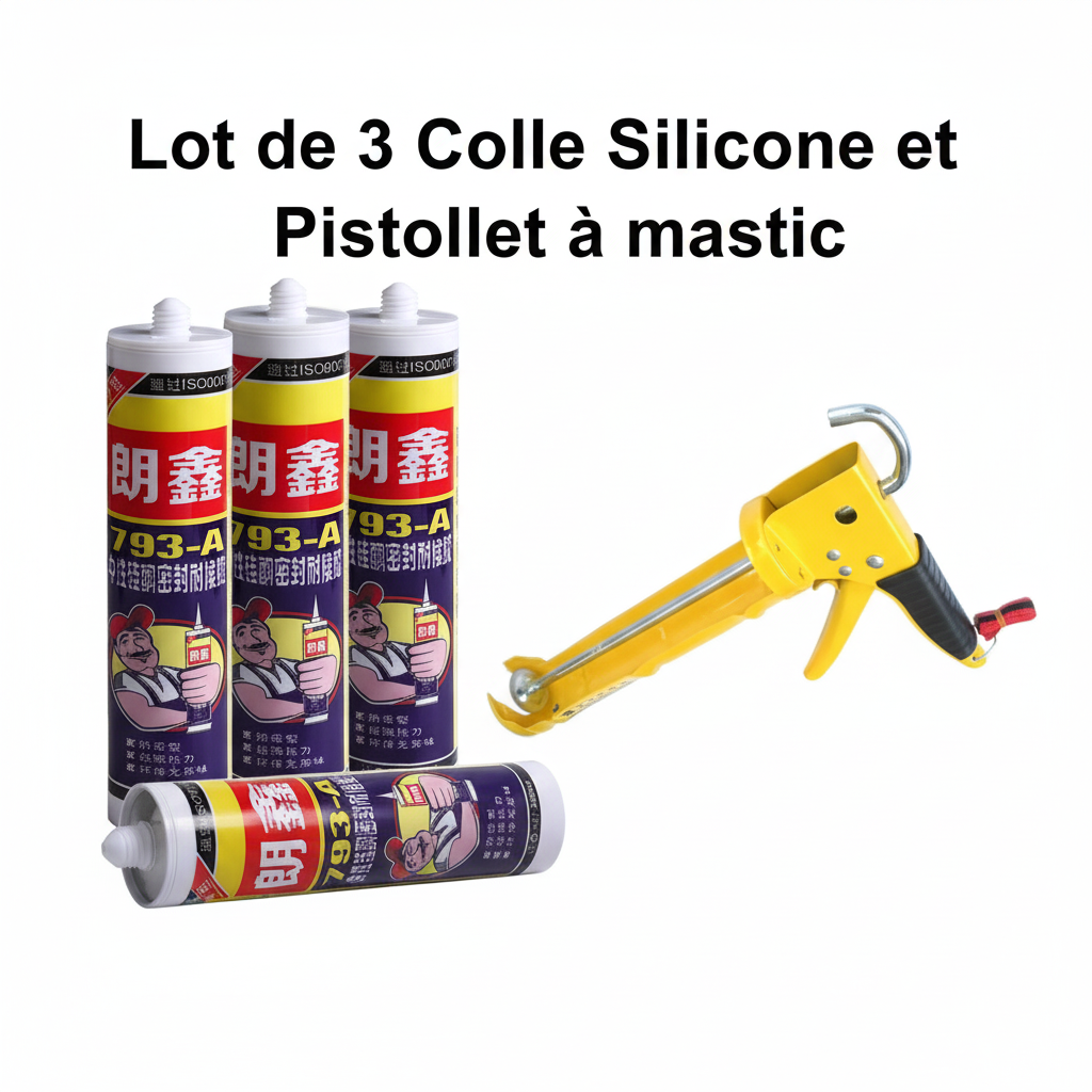 Idéal pour travaux de rénovation, ce lot comprend 3 tubes de colle silicone et un pistolet à mastic robuste. Application précise et sans effort. Parfait pour fenêtres et cuisines véhicule et autre usage