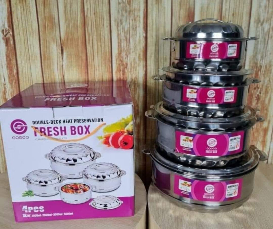 Ce set de 4 boîtes thermos en acier inoxydable est idéal pour conserver vos repas chauds ou frais. Chaque boîte assure une préservation optimale de la chaleur grâce à sa double paroi. Parfait pour la maison, le bureau ou les pique-niques, ce set est un must-have pour ceux qui apprécient la praticité et l'élégance. Compact et empilable, il s'adapte à tous vos besoins quotidiens.