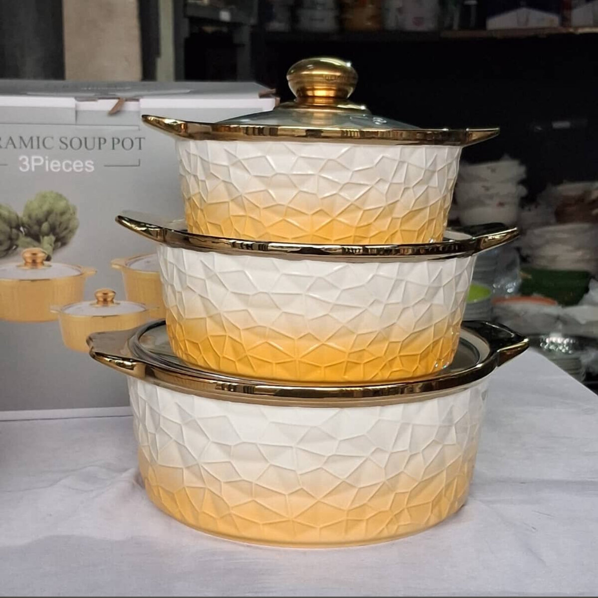 Découvrez notre ensemble de casseroles en céramique de luxe, parfait pour préparer et servir vos plats favoris. Doté d'un design élégant avec des finitions dorées, ce set est idéal pour les repas du quotidien ou les grandes occasions. Compatibles avec la plupart des types de cuisson, ces casseroles sont le choix parfait pour une cuisine moderne et élégante.