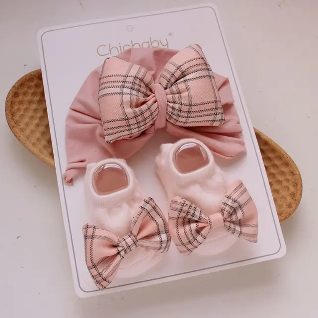 Adorable ensemble pour bébé comprenant des chaussons douillets et un bandeau assorti avec un joli motif à carreaux. Parfait pour garder votre petit au chaud et stylé. Idéal pour des séances photo ou des cadeaux de naissance.