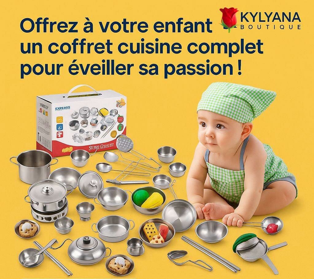 Éveillez la passion culinaire de votre enfant avec cet ensemble de cuisine en acier inoxydable. Parfait pour les enfants curieux, ce kit complet aide à développer l'imagination et les compétences sociales. Comprend divers ustensiles de cuisine pour un jeu réaliste.