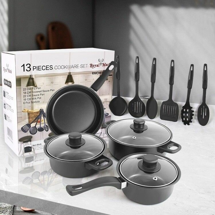 Ce set de batterie de cuisine de 13 pièces comprend tout ce dont vous avez besoin pour cuisiner comme un chef à la maison. Fabriqué avec un revêtement antiadhésif de haute qualité, il garantit une cuisson saine et sans accrocs. Idéal pour toutes les cuissons quotidiennes, il comprend des casseroles, poêles et ustensiles essentiels. Passez à la vitesse supérieure et simplifiez votre cuisine avec ce set complet!