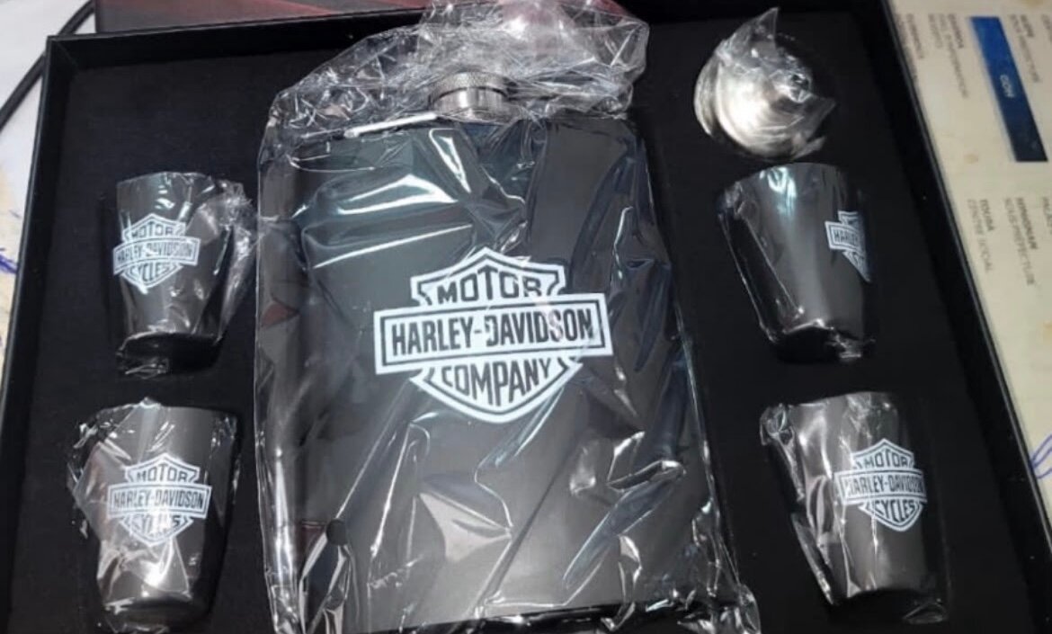Découvrez notre ensemble de flasque Harley-Davidson, idéal pour les amateurs de moto. Comprend une flasque élégante et quatre verres assortis, parfait pour vos aventures ou soirées. Fabriqué avec des matériaux de haute qualité, ce kit saura impressionner vos amis et ajouter une touche de style à vos moments spéciaux. Un cadeau parfait pour les passionnés de Harley-Davidson ou les amateurs de boissons raffinées.