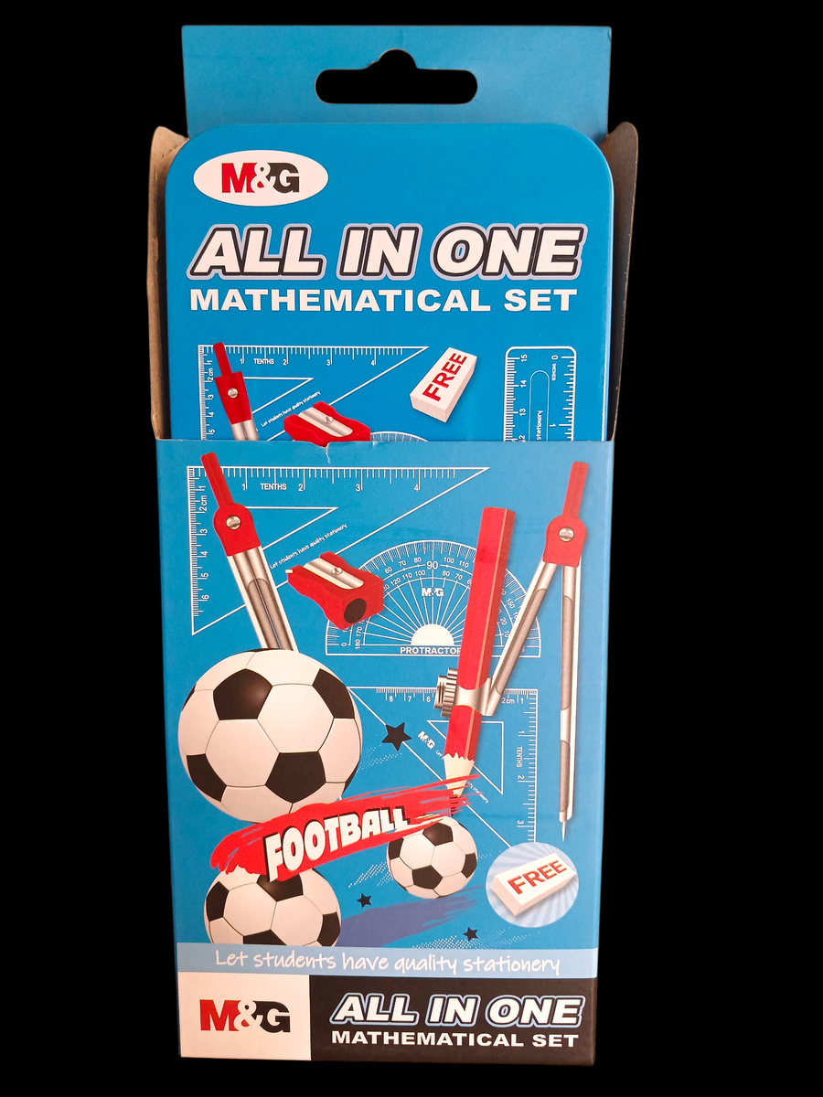 Ce set mathématique tout-en-un est idéal pour les étudiants. Comprend compas, règle et équerre, parfait pour le travail scolaire. Design sportif avec motif de football, encourage l'apprentissage amusant et efficace. Un choix pratique pour la rentrée scolaire.