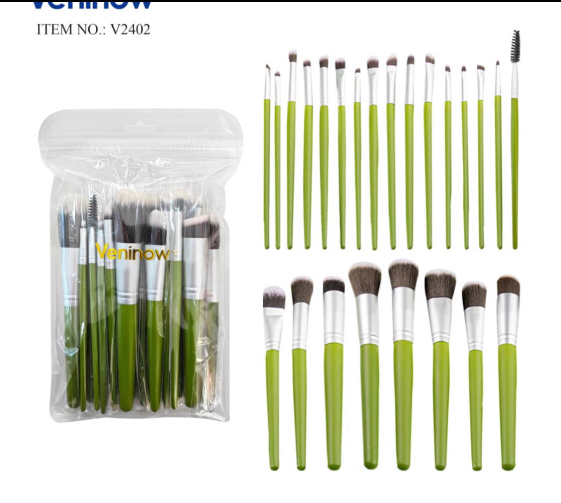 Découvrez ce superbe set de 20 pinceaux de maquillage professionnels, idéal pour les débutants et les experts. Avec leurs manches verts élégants, ces pinceaux offrent une application précise et homogène pour le visage et les yeux. Parfait pour le contouring, l'ombrage et l'estompe.