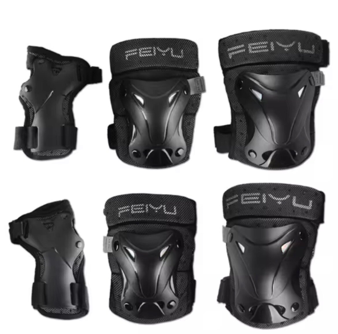 Ensemble de protections résistantes pour le patinage, le roller ou le skateboard. Comprend protections des poignets, genoux et coudes. Design ergonomique et ajustable pour un confort optimal. Idéal pour assurer la sécurité des adultes et adolescents passionnés de sports extrêmes.