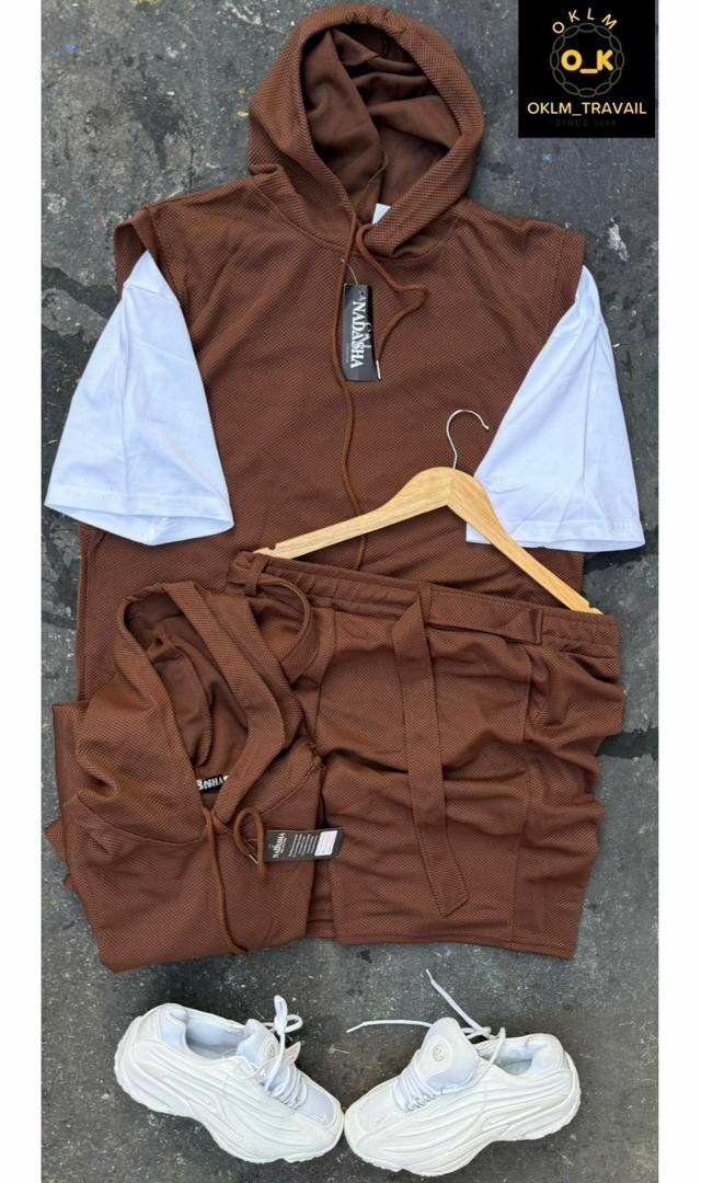 Découvrez notre set de sport décontracté pour homme, comprenant un sweat à capuche sans manches et un short assorti. Confort optimal et style moderne assurés. Idéal pour la salle de sport ou les journées décontractées. Disponibles en plusieurs coloris.