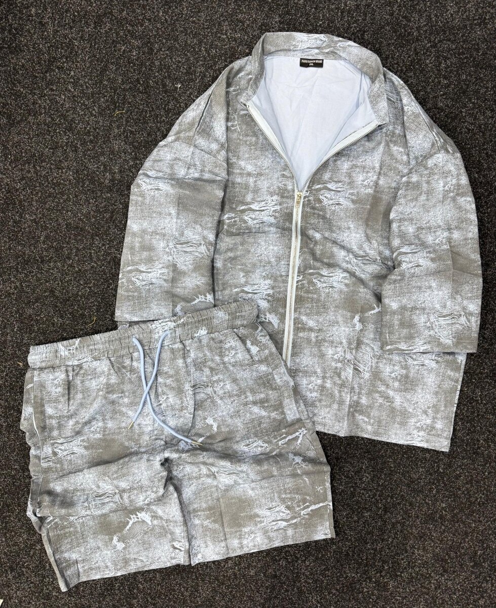 Ce set de survêtement pour hommes est idéal pour un style décontracté et moderne. Composé d'une veste zippée et d'un short assorti, il offre confort et liberté de mouvement. Parfait pour les sorties décontractées ou les moments de détente à la maison. Affirmez votre style avec ce set tendance et pratique.