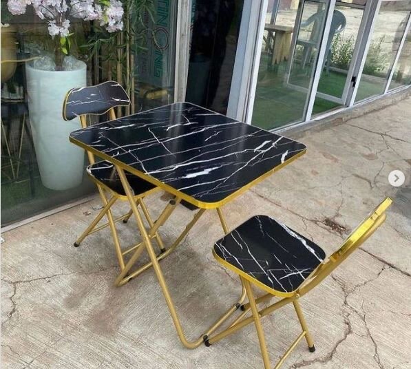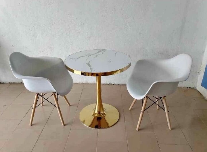 Améliorez votre espace avec ce magnifique set comprenant une table en marbre avec une base dorée élégante et deux chaises en plastique au design moderne. Idéal pour les salons ou terrasses, ajoutant une touche chic et contemporaine. Matériaux robustes pour un confort durable.