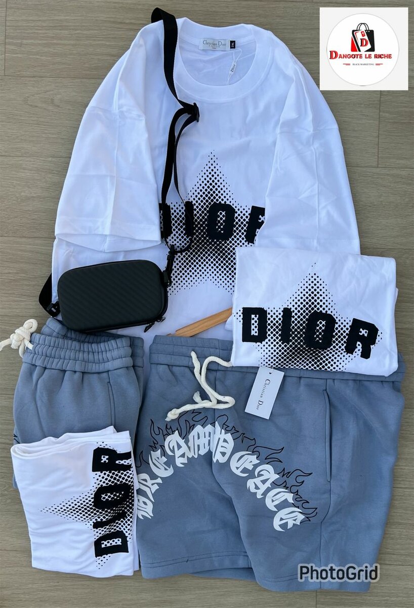 Ensemble tendance avec t-shirt et short Dior pour un style décontracté et chic. Idéal pour les sorties estivales et les moments de détente. Fabriqué en matériaux confortables, ce set offre un look moderne et sophistiqué tout en assurant un confort ultime. Parfait pour les amateurs de mode urbaine souhaitant se démarquer avec élégance.