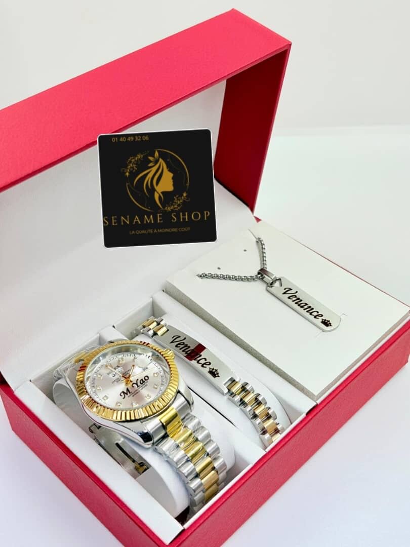 Découvrez notre set de montre et bracelet pour homme, parfait pour ajouter une touche d'élégance à votre style. Ce set comprend une montre sophistiquée et un bracelet assorti, présentés dans un coffret cadeau élégant. Idéal pour les occasions spéciales ou comme cadeau inoubliable.