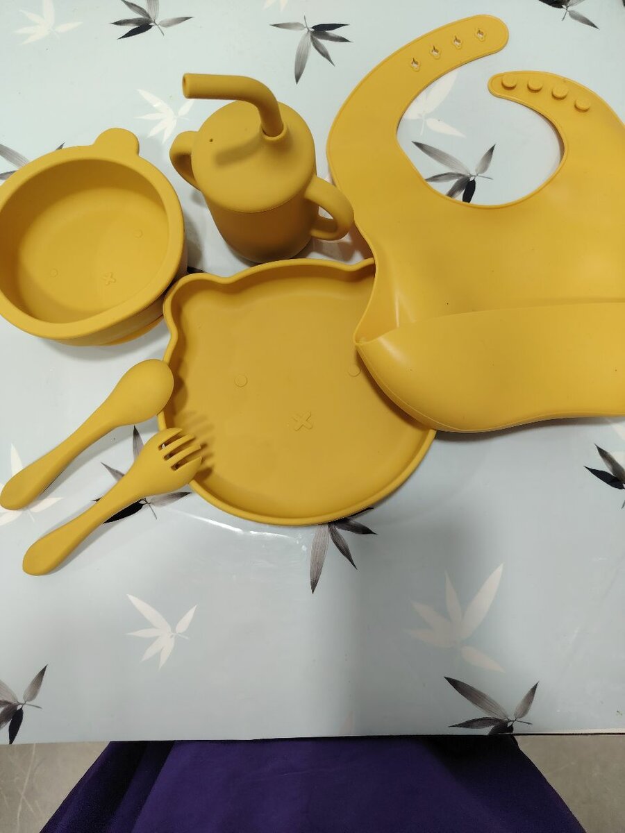 Ce set repas en silicone pour bébé est idéal pour les repas des tout-petits. Composé d'une assiette, d'un bol, d'une fourchette, d'une cuillère et d'un bavoir, il est parfait pour les repas quotidiens. Le matériau en silicone est sans BPA et facile à nettoyer. Idéal pour une utilisation à la maison ou en déplacement, ce set rend les repas amusants et pratiques pour votre enfant.
