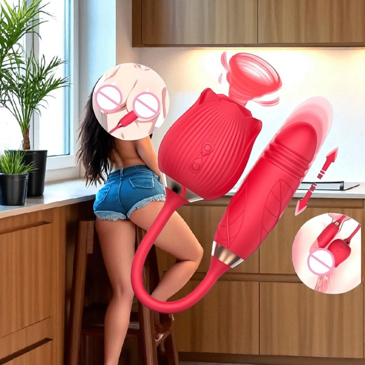 Abandonne-toi à la folie de cette rose 2 en 1! Succion torride qui aspire ton plaisir, vibration télescopique qui te remplit à en perdre la tête. 10 modes diaboliques pour te faire jouir sans pitié. Étanche, douce, rechargeable: elle promet des orgasmes sauvages, seuls ou accompagnés!
