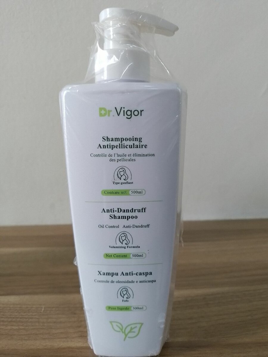Éliminez les pellicules avec le shampooing Dr.Vigor. Formule de contrôle du sébum pour un cuir chevelu sain et frais. Flacon de 500ml.