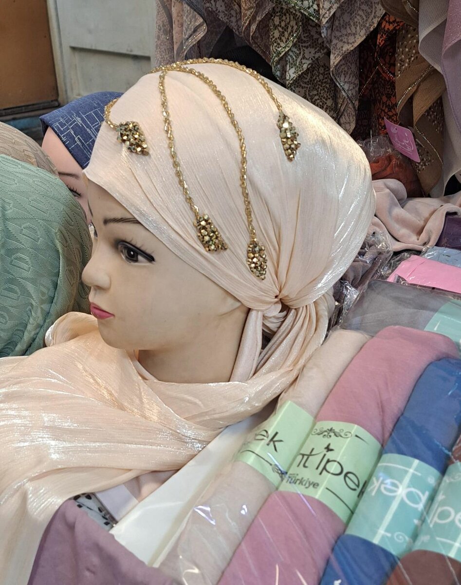 Дубайская органза шарф С пришитым боне