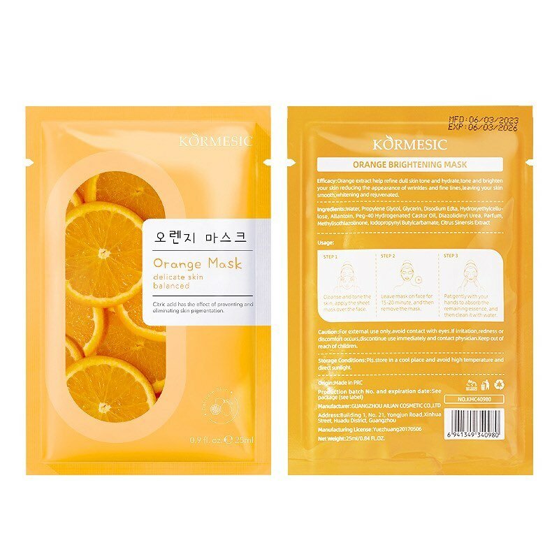Face mask sheet available in different flavors