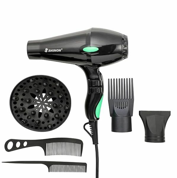 Sèche-cheveux professionnel 6000 watts 3 réglages de chaleur (chaud/froid/chaud) 2 réglages de vitesse avec buse de coiffage concentrateur, diffuseur et buse de peigne, 2 peignes outil de coiffage air frais et chaud, noir