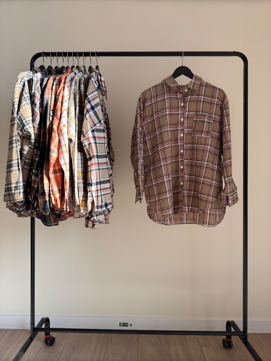 Стильная женская рубашка в клетку с модным дизайном и заниженными рукавами. Идеально подойдёт для создания повседневного или кэжуал образа. Лёгкая и удобная ткань делает её отличным выбором для любого сезона.