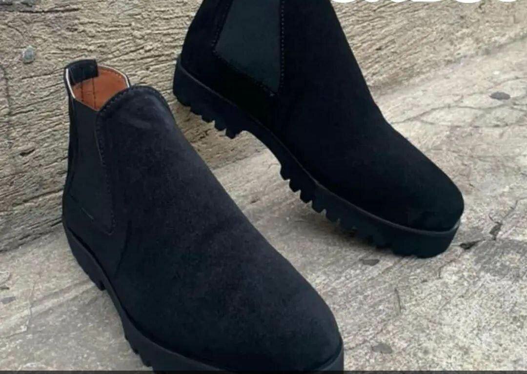 A pair of leather men Shoes, it has round toed, cushioned fo