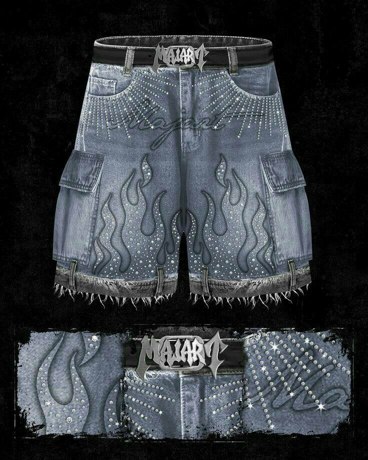 Découvrez ce short en jean déchiré et strassé pour un look rock tendance. Conçu en denim de qualité avec des détails de strass, il offre un style audacieux. Idéal pour les amateurs de mode urbaine.