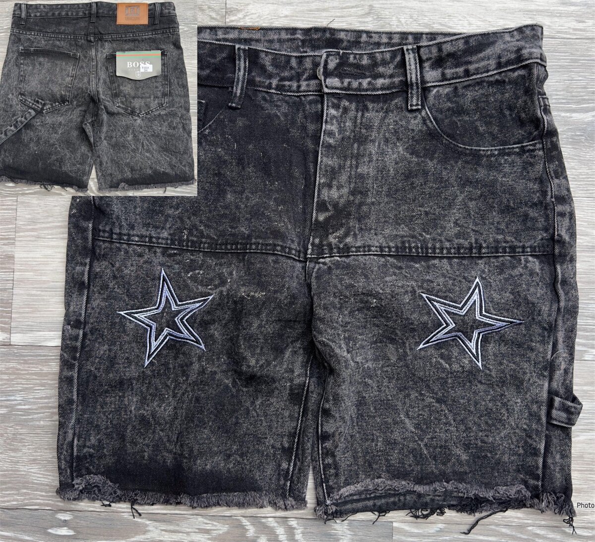 Optez pour ce short en jean noir avec motif étoilé, idéal pour une tenue décontractée et tendance. Confortable et stylé, parfait pour toutes les occasions estivales.