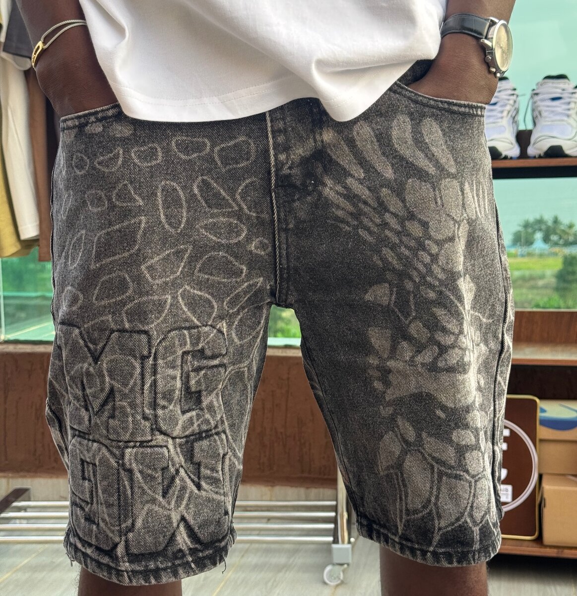 Découvrez notre short en jean avec motifs graffiti uniques. Idéal pour les sorties décontractées, ce short apporte une touche de style urbain à votre garde-robe. Conçu pour offrir confort et durabilité, il est parfait pour les journées d'été. Associez-le avec un t-shirt simple pour un look branché et moderne. Ne manquez pas ce choix incontournable pour une tenue tendance!