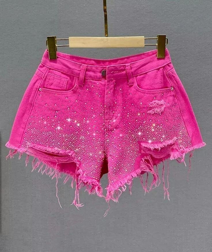 Découvrez ce short en jeans rose pour femme, orné de détails uniques. Parfait pour des looks décontractés et tendances, il est idéal pour les soirées ou les sorties décontractées. Conçu pour un confort optimal et un style audacieux.