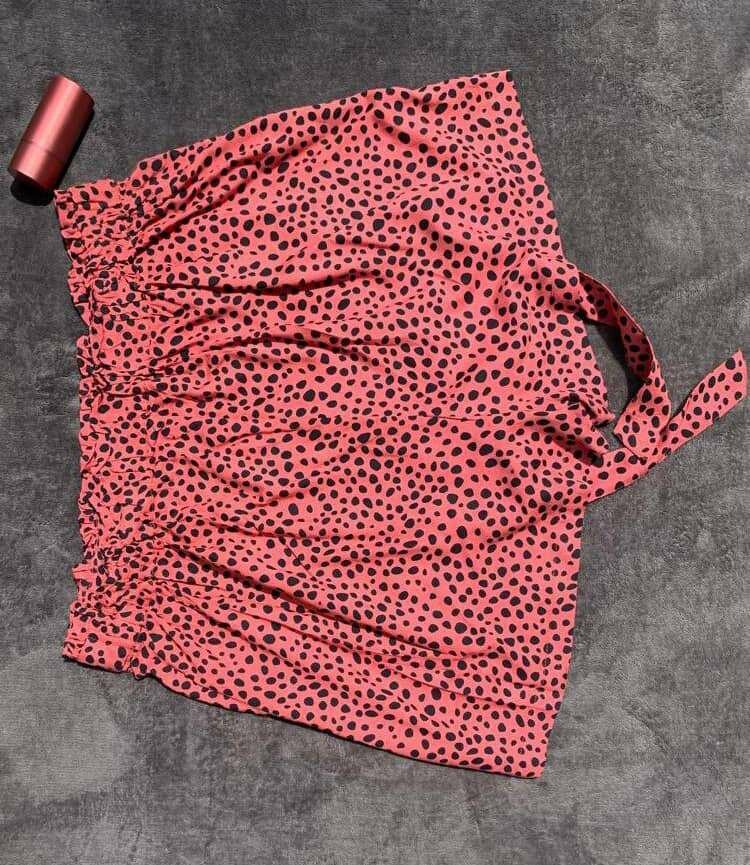 Short rouge à pois noirs, taille élastiquée avec liens. Confectionnez une tenue chic et confortable. Facile à coudre et à assortir avec un top noir.