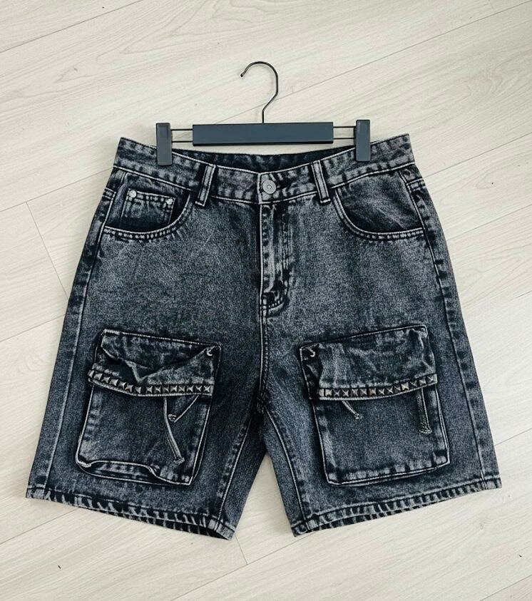 Découvrez ces shorts cargo en jeans noir délavé, parfaits pour un look décontracté et tendance. Confortables et résistants, ils sont idéaux pour les journées décontractées ou les sorties en ville.