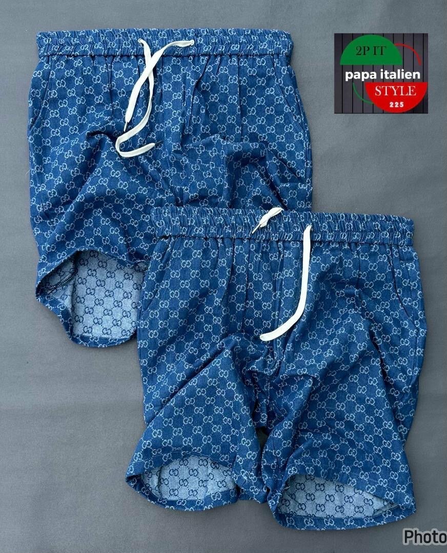Ensemble de 2 shorts de bain élégants pour hommes en bleu avec motif distinctif. Fabriqués en matériau de haute qualité, ils offrent un confort optimal pour la plage ou la piscine.