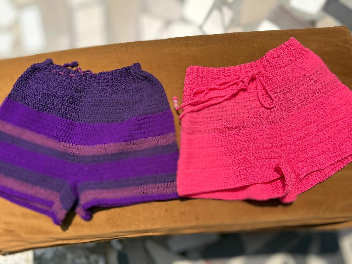 Découvrez nos shorts en crochet faits à la main, parfaits pour un look estival décontracté. Disponibles en couleurs vives et motifs rayés, ces shorts sont légers, confortables et uniques. Idéals pour la plage, les sorties ou simplement se détendre à la maison.