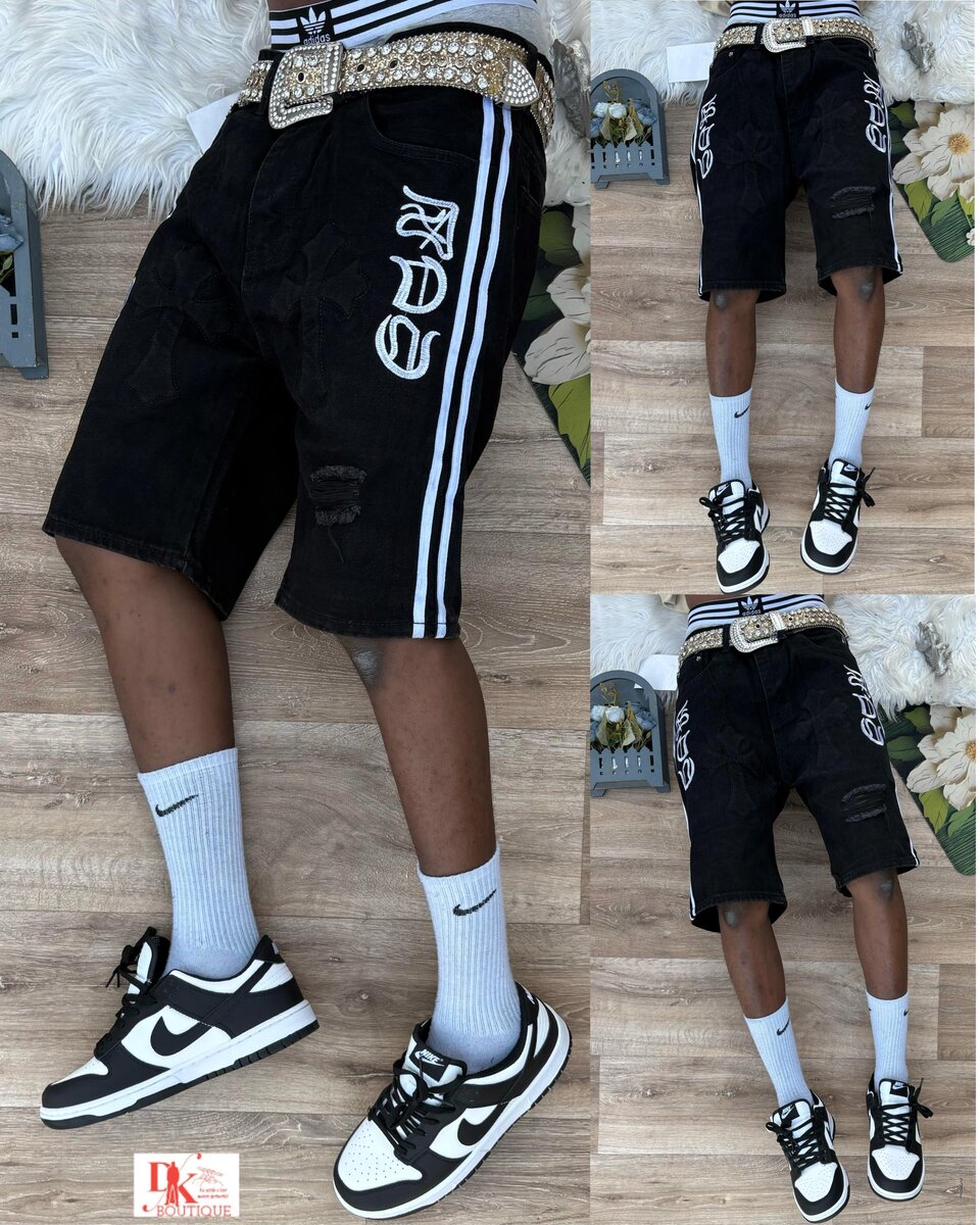 Optez pour ces shorts en jean modernes avec bandes latérales et broderie élégante. Parfait pour un look décontracté et stylé cet été. Confortables et résistants, ils s'associent idéalement avec des baskets. Ajoutez une touche urbaine à votre garde-robe. Idéal pour les jeunes et les passionnés de mode.