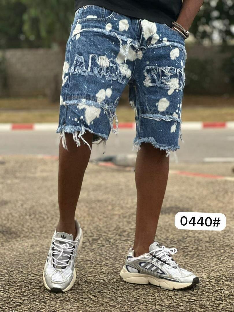 Découvrez ces shorts en jean délavé pour homme au style décontracté et moderne. Parfait pour les sorties d'été, ce short offre confort et style avec ses motifs déchirés et usés. Idéal pour un look casual et tendance.