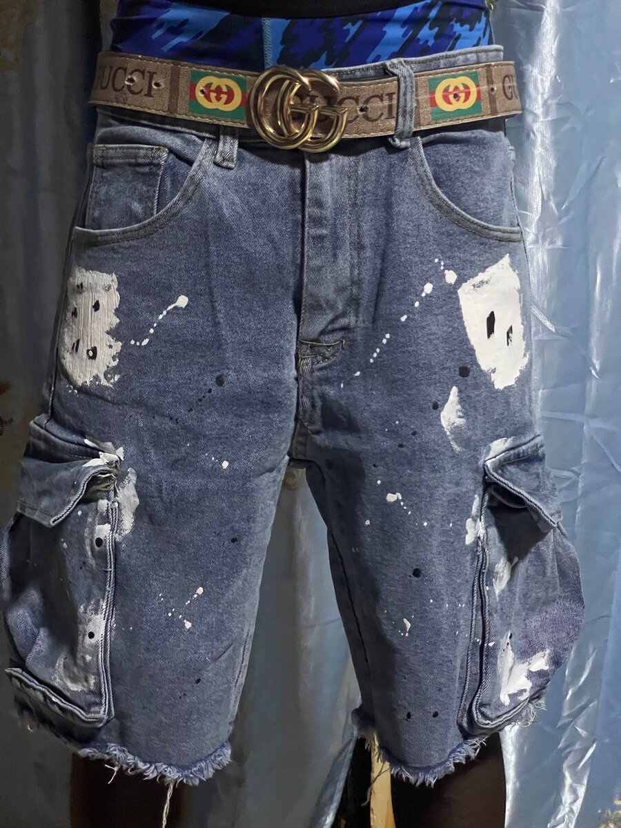 Découvrez ces shorts en jean décontractés avec effet déchiré et éclaboussures artistiques. Parfaits pour un look urbain et stylé, ces shorts sont idéaux pour l'été et les sorties entre amis. Leur coupe moderne et confortable garantit un port agréable toute la journée.