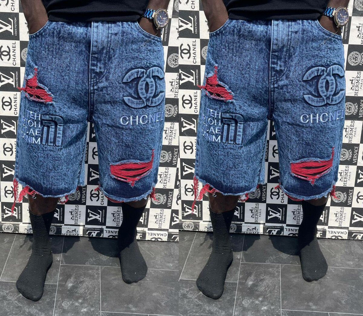 Découvrez le confort et le style avec ces shorts en jean décontractés. Parfaits pour un look urbain, ils sont ornés de motifs modernes qui attirent l'œil. Idéal pour une tenue estivale ou pour une sortie décontractée entre amis. Conçus pour être résistants et confortables, ces shorts sont un excellent choix pour les journées chaudes.