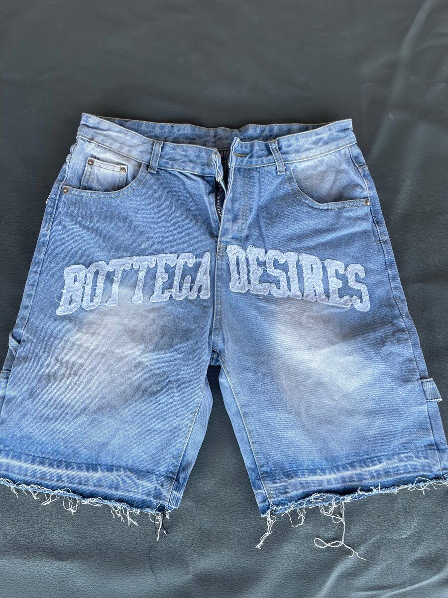 Découvrez le style unique de ces shorts en jean avec un design audacieux Bottega Desires. Parfaits pour une tenue décontractée ou une sortie estivale, ces shorts offrent confort et tendance. Le choix idéal pour ceux qui souhaitent se démarquer avec un look moderne et estival.