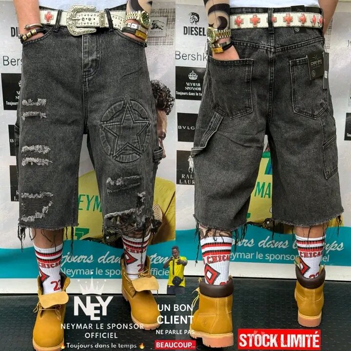 Exprimez votre style avec ces shorts en jean décontractés pour hommes. Parfaits pour un look urbain unique, ils se distinguent par des détails audacieux et des finitions effilochées. Confort et singularité garantis pour toutes vos sorties.