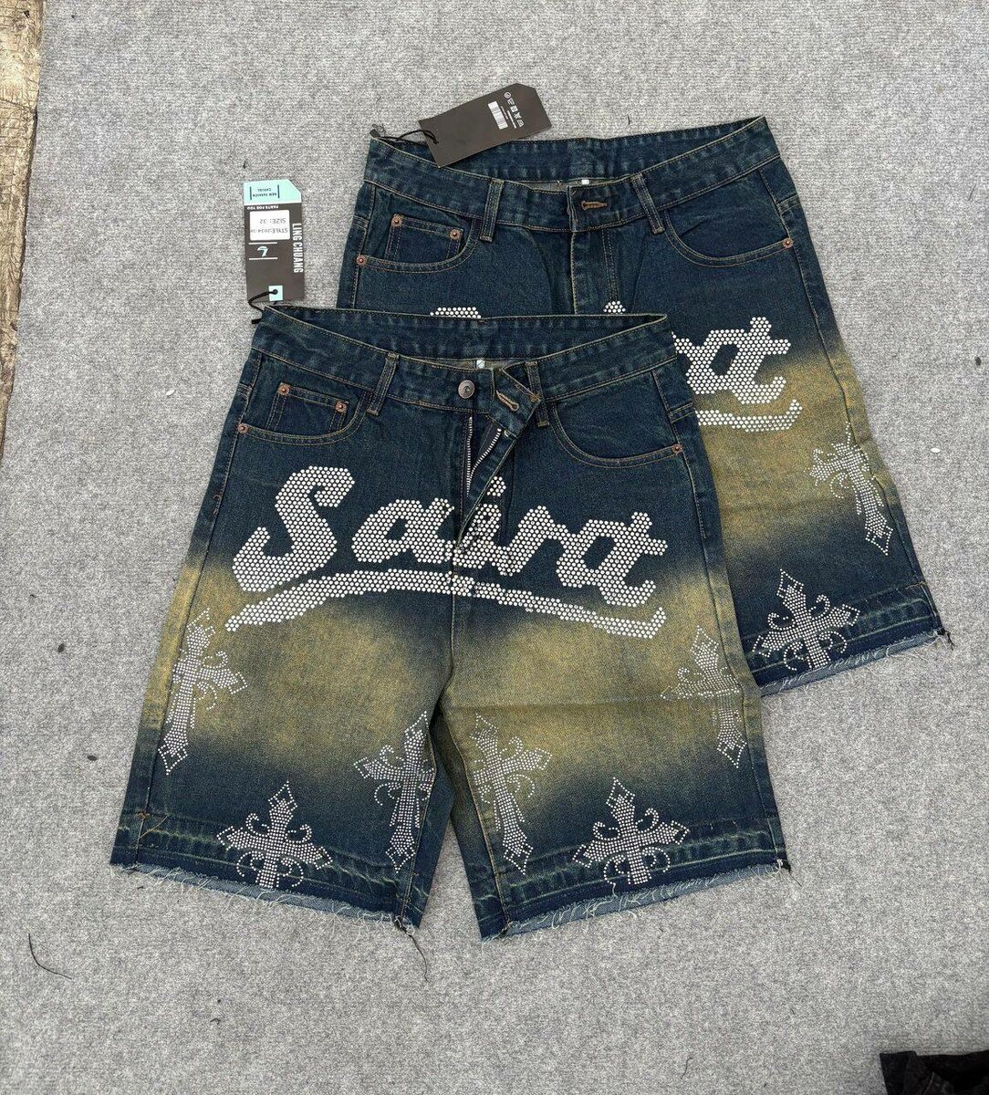 Découvrez ces shorts en jean décontractés ornés de motifs uniques et de détails en perles. Conçus pour offrir un confort optimal et un style tendance, ils sont parfaits pour les journées d'été ou les sorties décontractées. Fabriqués à partir de denim de haute qualité, ces shorts sont durables et résistants. Apportez une touche d'originalité à votre garde-robe avec ces pièces incontournables pour un look cool et chic.