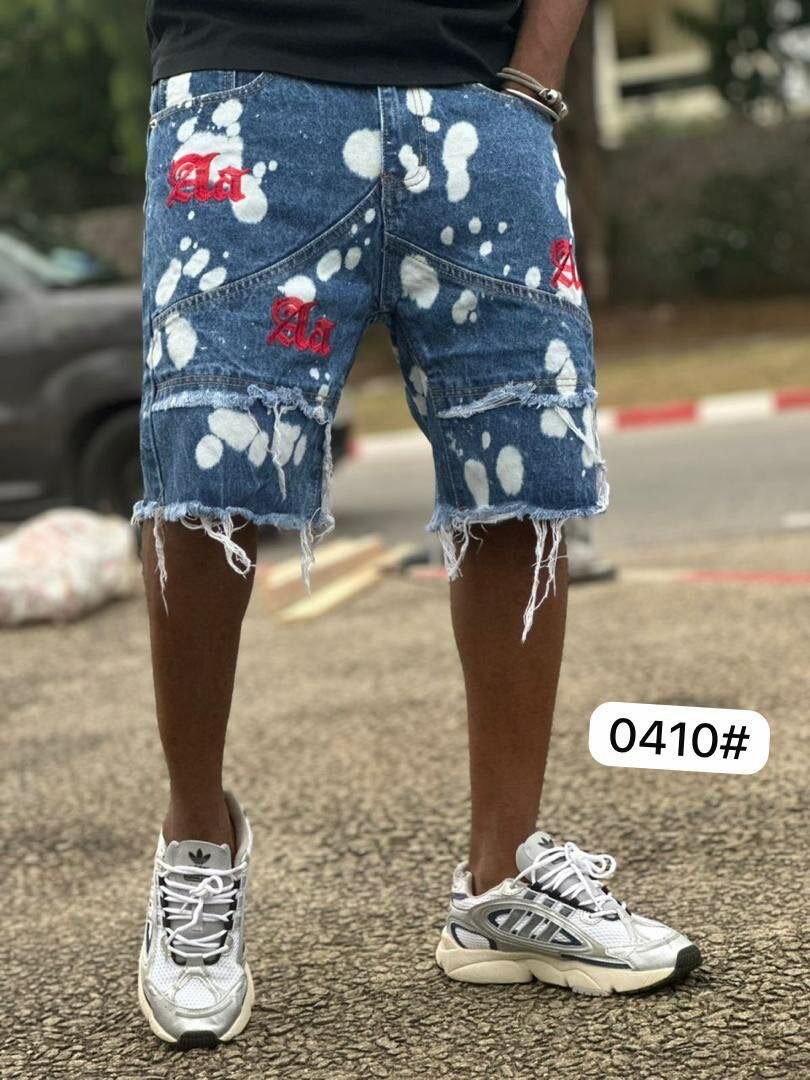 Découvrez ce short en jean délavé avec des motifs uniques. Idéal pour un look décontracté et stylé. Confortable et parfait pour l'été, il se mariera avec tous vos t-shirts préférés. Ajoutez une touche de modernité à votre garde-robe!