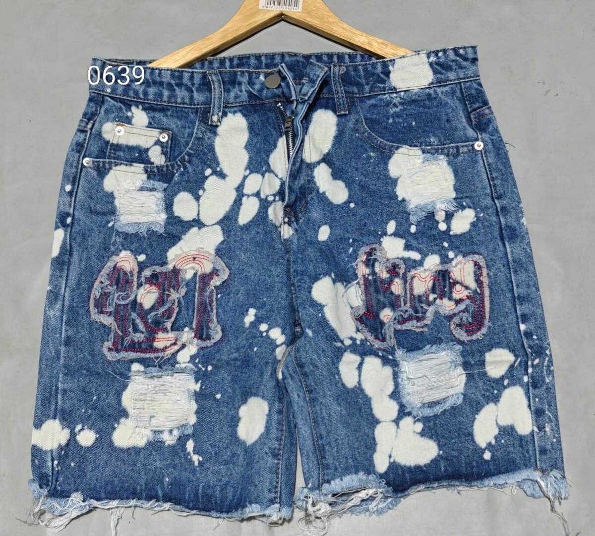 Découvrez ces shorts en jean délavé avec détails déchirés et motifs uniques. Idéal pour un look décontracté et audacieux cet été. Fabriqués en denim de qualité, ces shorts offrent à la fois confort et style. Parfaits pour les sorties entre amis ou une journée à la plage, ils s'associent facilement avec votre t-shirt favori. Comparez et choisissez le meilleur pour compléter votre garde-robe.