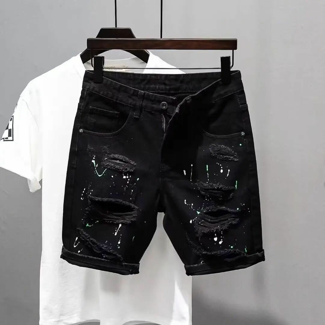 Explorez votre style avec ces shorts en jean décontractés ornés d'imprimés audacieux. Idéal pour un look urbain tendance et confortable.