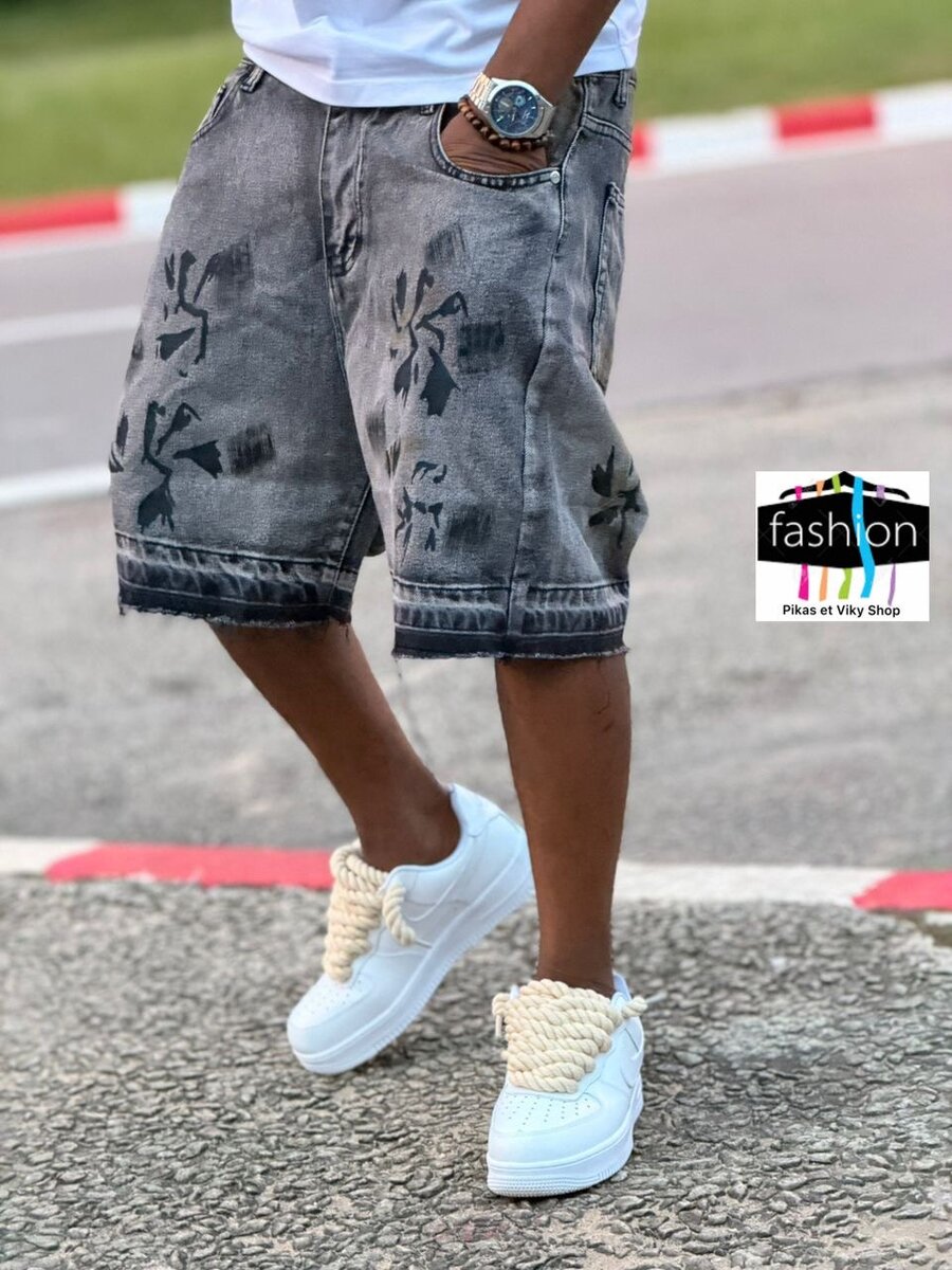 Découvrez ces shorts en jean tendance avec motifs imprimés, parfaits pour un look urbain et décontracté. Fabriqués avec du denim de haute qualité, ils offrent confort et style tout au long de la journée. Idéals pour être portés lors de sorties entre amis ou pour un look casual au quotidien. Associez-les à vos baskets préférées pour compléter votre tenue stylée et moderne.