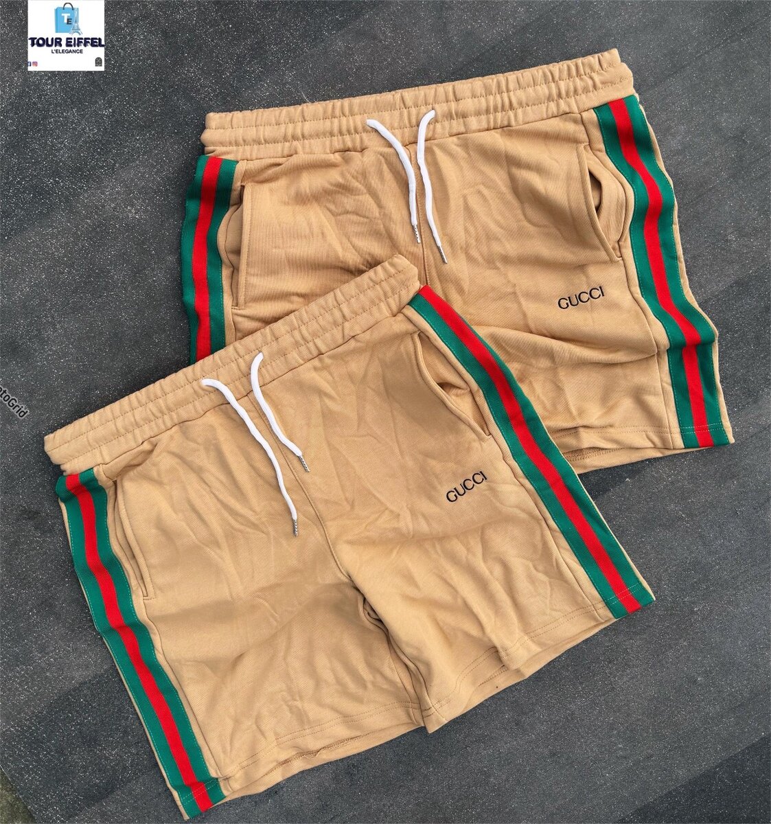Découvrez ces élégants shorts pour homme de la marque Gucci en beige. Parfaits pour un look sportif et décontracté, ils sont ornés des bandes iconiques rouges et vertes. Confortables et stylés, ces shorts sont un choix idéal pour les sorties estivales et les séances de sport.