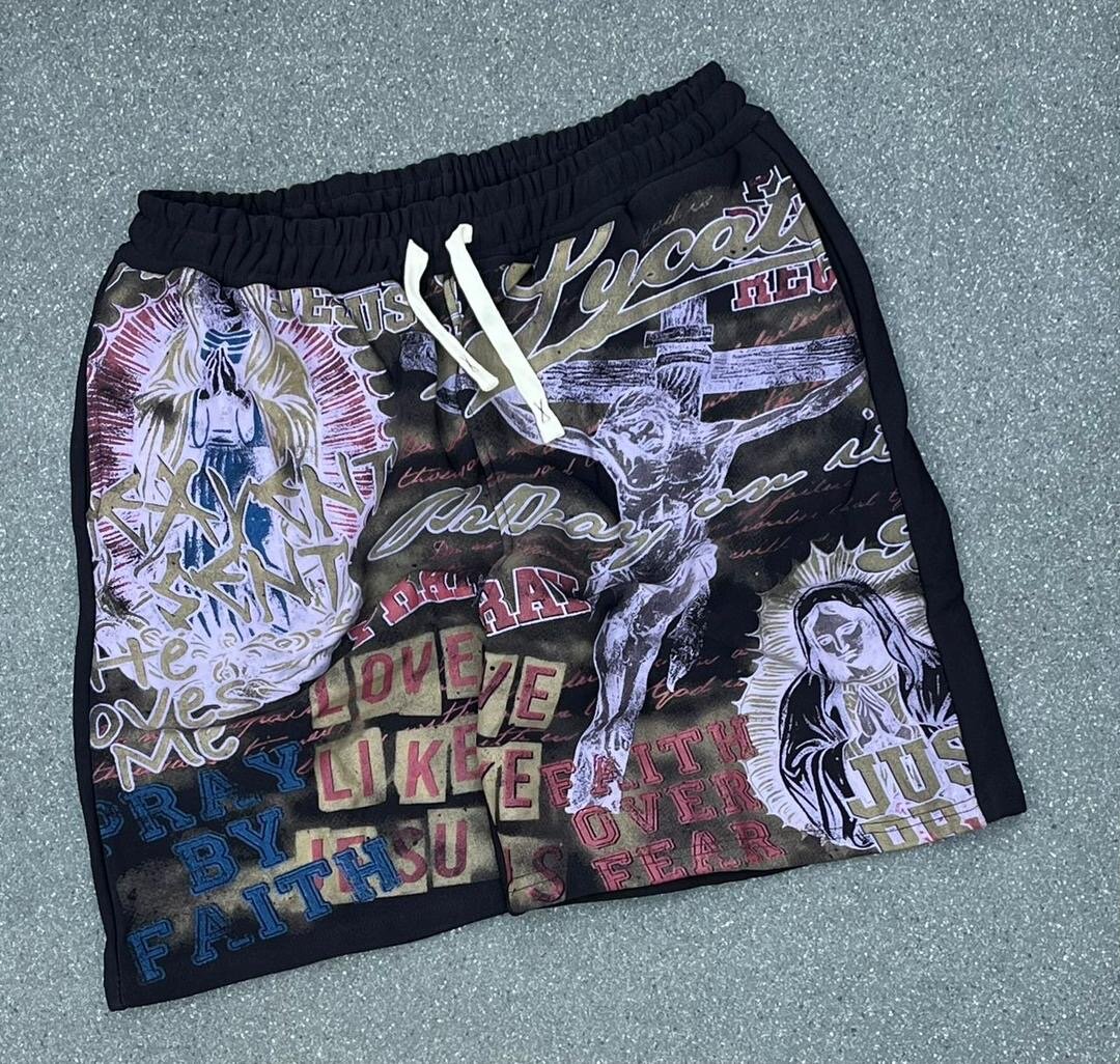 Découvrez ces shorts noirs confortables avec un imprimé graphique unique. Parfaits pour l'été, ces shorts sont idéaux pour la plage ou les activités décontractées. Conçus pour un confort optimal, ils sont dotés d'un cordon de serrage.