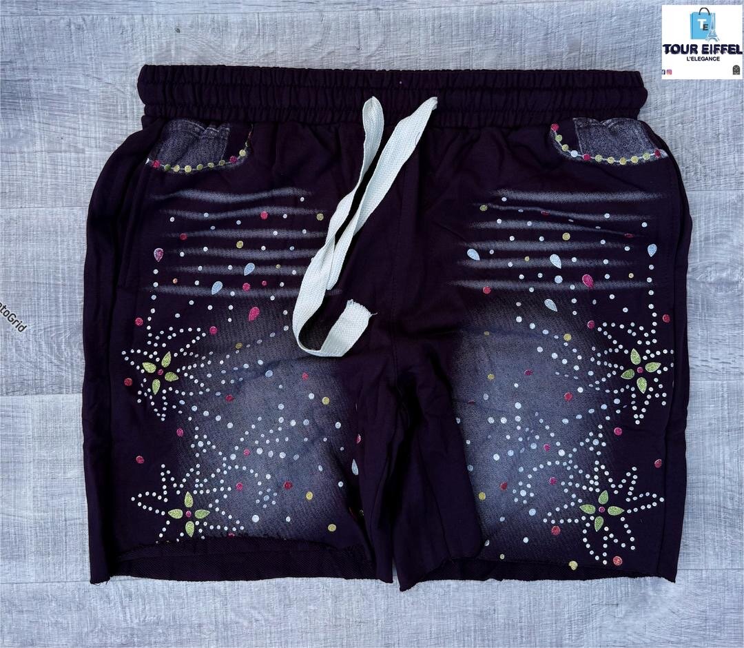 Découvrez le short noir à motifs colorés Tour Eiffel, parfait pour un look décontracté et moderne. Conçu avec une bande élastique confortable et un cordon de serrage pratique, ce short est idéal pour une journée à la plage ou une détente à la maison. Sa matière légère assure un confort optimal tout au long de la journée. Un choix parfait pour les amateurs de mode urbaine.