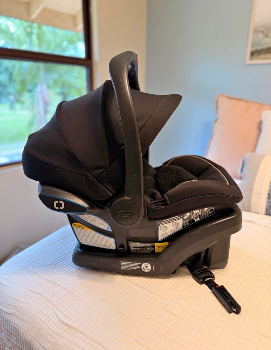 Siège auto pour bébé noir Chicco, confortable et sûr. Installation facile et sécurisée. Conçu pour protéger votre enfant lors de vos déplacements.