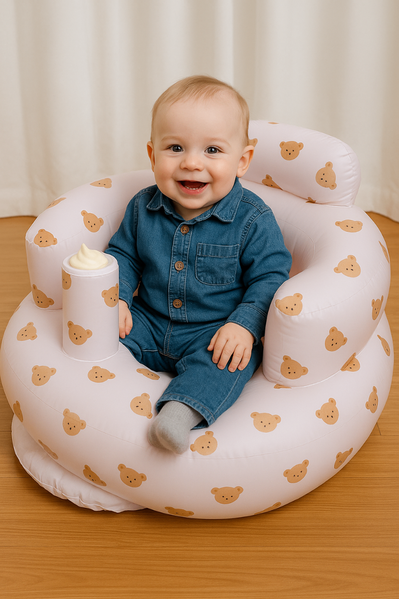 Assurez le confort et la sécurité de votre bébé avec ce siège gonflable à motif ourson. Idéal pour jouer et se détendre, il est parfait pour les enfants apprenant à s'asseoir. Léger et facile à transporter.