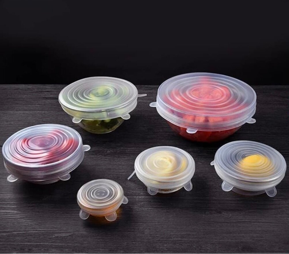 Silicone food cover Stretches and safe to use Uses: cover left over food, fruits, beverages in cups, etc Comes 6pieces in one pack Comes in different sizes for different needs Can assume different shapes