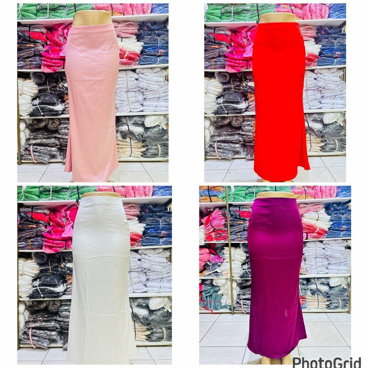 Silk maxi skirt available in white, red and pink